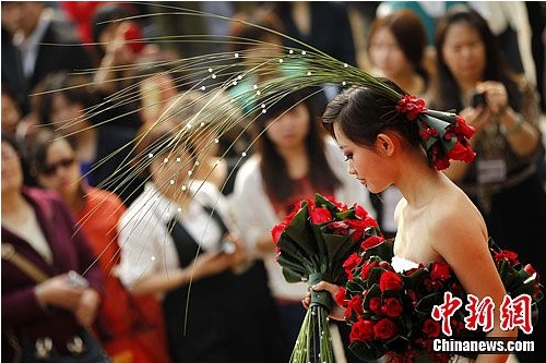 個(gè)性鮮花婚紗秀登場京城萊太花卉市場