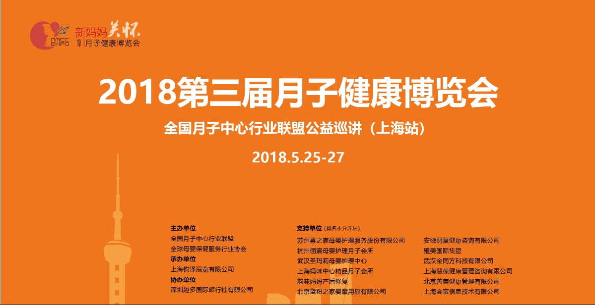 2018第三屆月子健康博覽會(huì)全國(guó)月子中心行業(yè)聯(lián)盟公益巡講(上海站)于5月25-27日在上海光大會(huì)展中心圓滿(mǎn)舉行